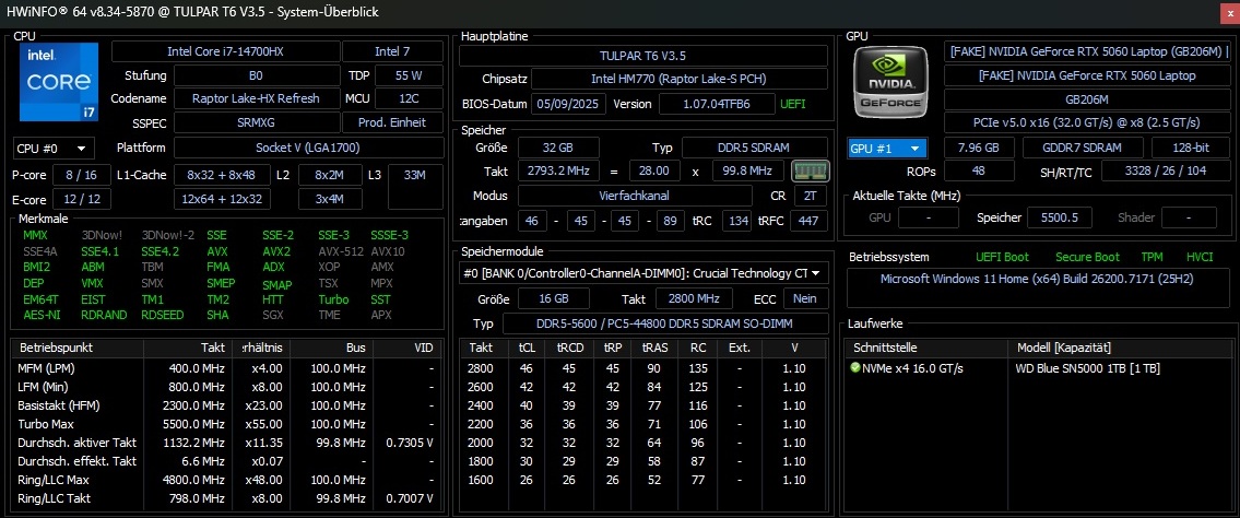 Eğer 1.000 avro aralığında güncel bir dizüstü oyun bilgisayarı arıyorsanız, Tulpar Notebook'un T6 V3.5 modeli size uygun olabilir. GeForce RTX 5060 ile 16 inçlik model, hızlı bir Core i7-14700HX ile eşleştirilmiş sağlam bir orta sınıf GPU sunuyor (ancak sürekli yük altında biraz performans kaybediyor). Test ünitemiz ayrıca 32 GB DDR5 RAM (2×16 GB) ve 1 TB NVMe SSD içeriyordu.