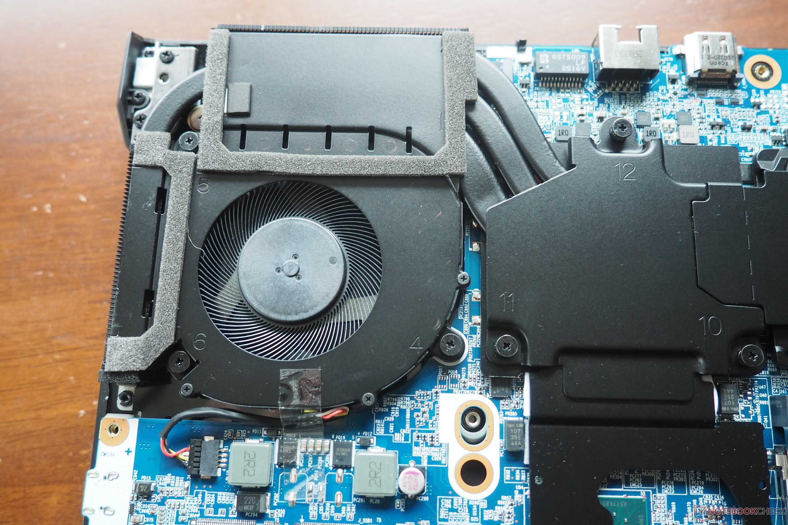 Alt kapağı yuvalarından çıkarabilmeniz için toplam on iki Phillips vidanın çıkarılması gerekir. Kaputun altında iki fanlı bir soğutma sisteminin yanı sıra iki RAM yuvası ve iki SSD yuvası bulacaksınız. Bataryaya da buradan erişilebilir.