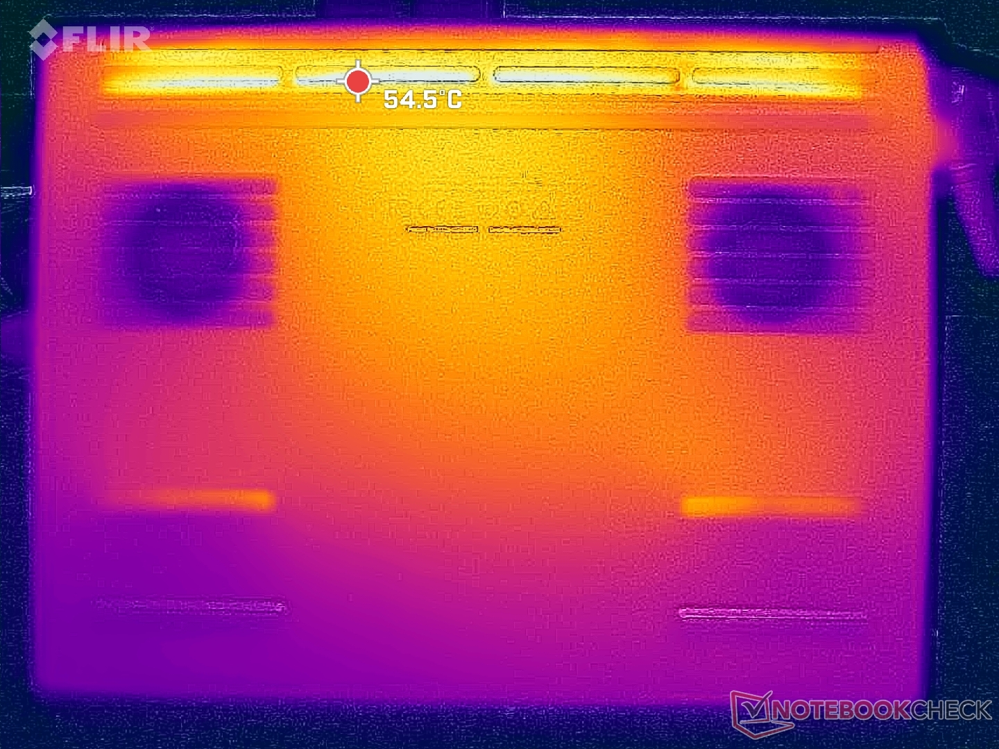 Masaüstünde rölantide çalışırken bile yüzey sıcaklıkları oldukça sıcaktır, çünkü fanlar zorlu yükler çalışmadığında uyuşuk olma eğilimindedir. Bu nedenle sistem, web'de gezinirken veya video oynatırken ortalama olarak diğer Ultrabook'lardan daha sıcaktır, ancak daha sessiz fanlar iyi bir değiş tokuş sağlar.