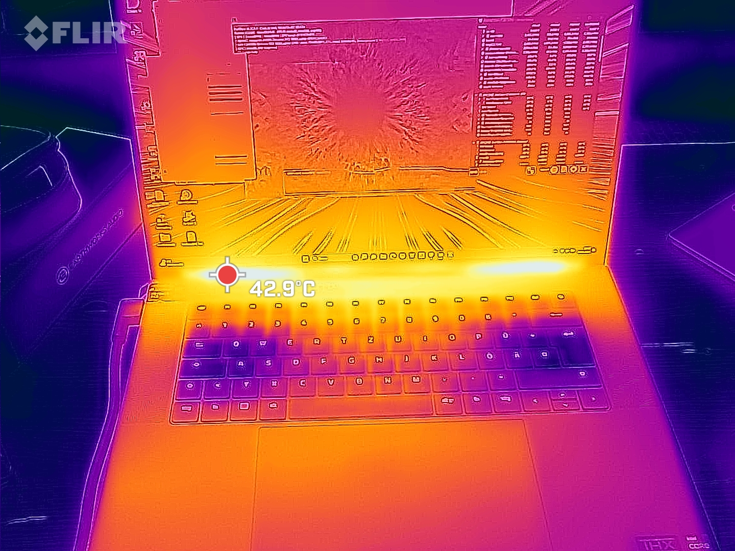Maksimum stres altında 47 °C'ye varan sıcak noktalar ölçtük. Bu, cihazı kucağınıza koymak için çok sıcak, ancak rakiplerine kıyasla hala nispeten serin.