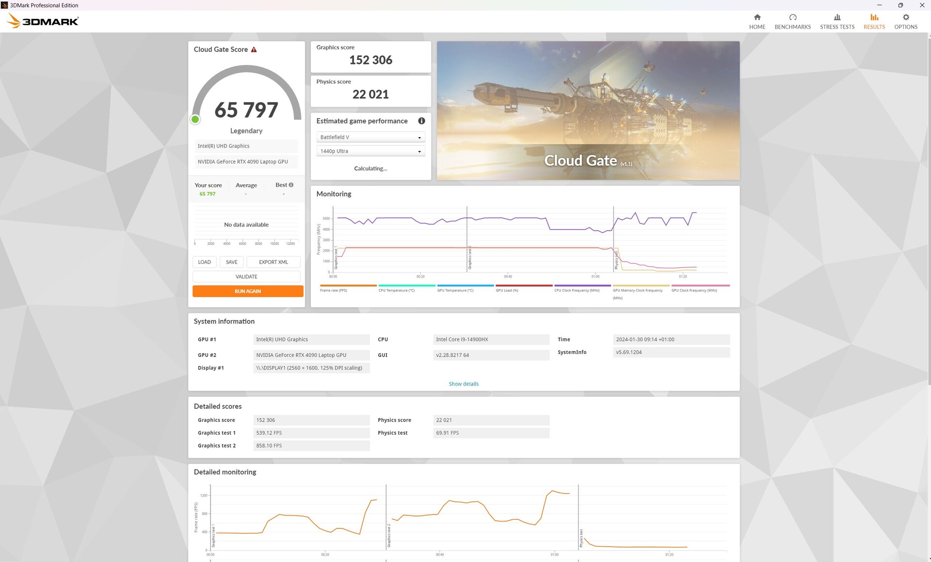 | 89.8 % v7 (old) | 02/2023 | Razer Blade 16 Early 2023 RTX 4090 i9-13950HX, GeForce RTX 4090 Laptop GPU | 2.5 kg | 21.99 mm | 16.00" | 3840x2400 | |