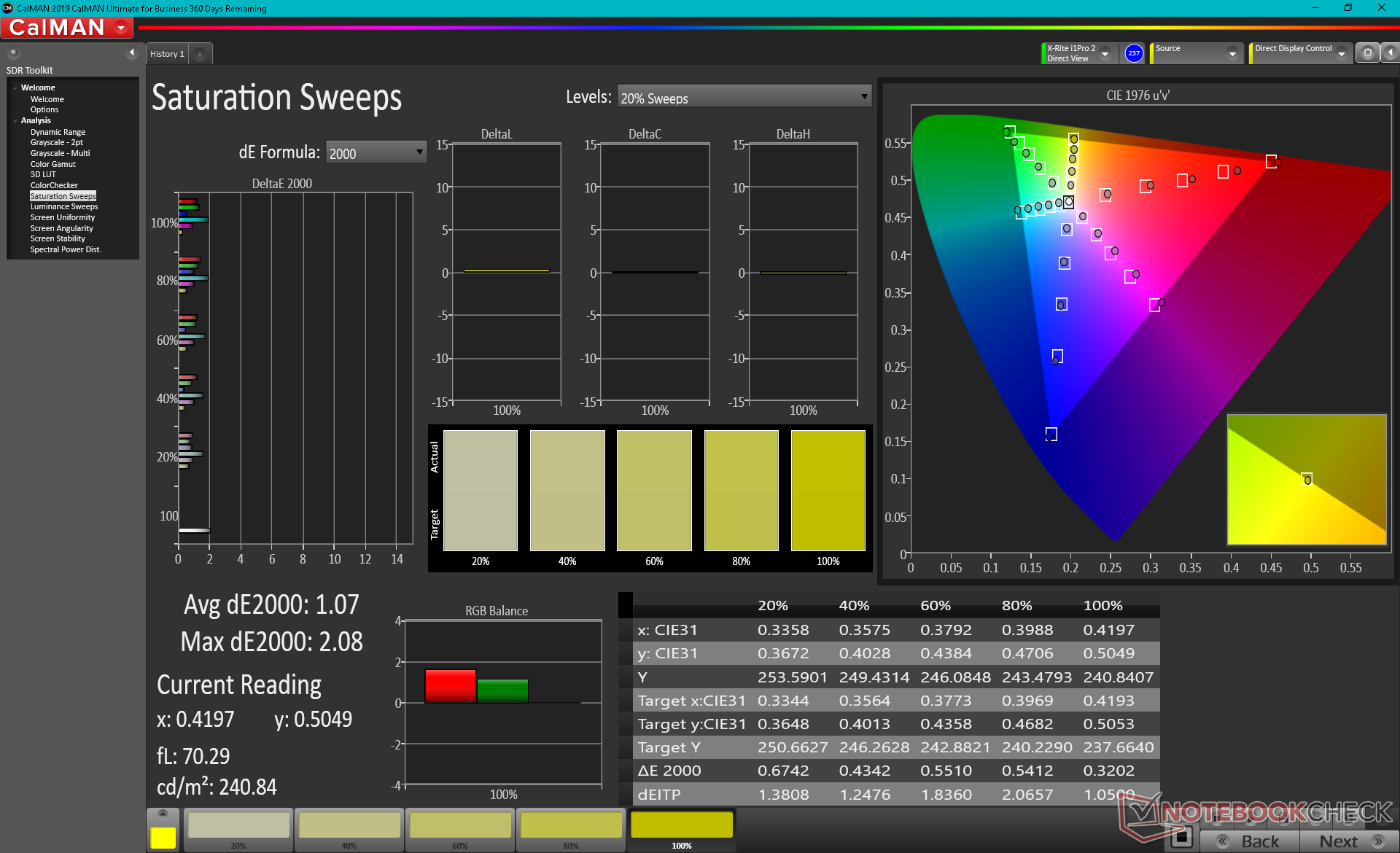 | sRGB Coverage (%) | 99.3 | 99.1 0% | 99.8 1% | 99.4 0% | 98.6 -1% | 97.2 -2% |
