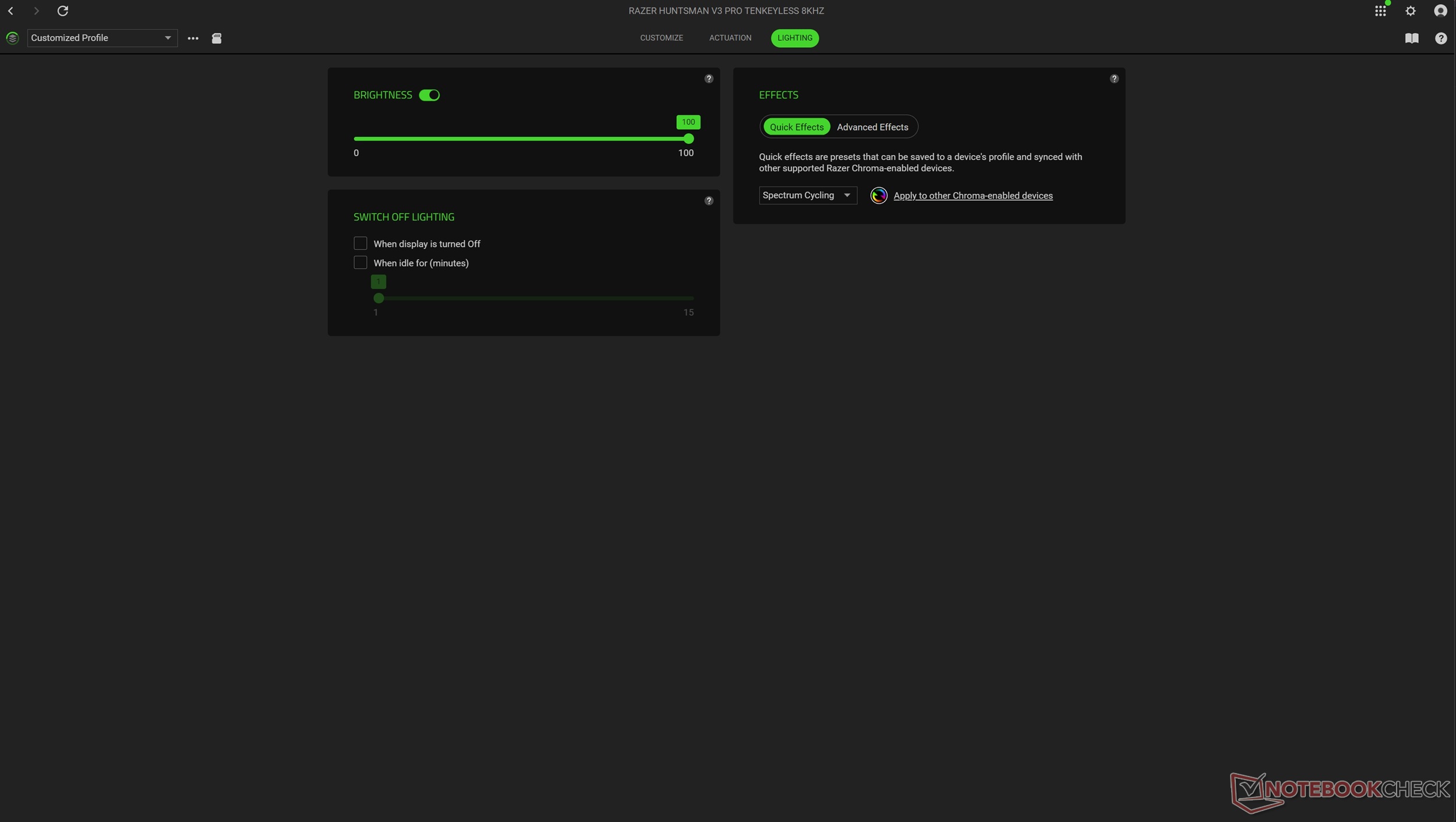 Ana Synapse programında bulunan temel efektlerle aydınlatma seçenekleri büyük ölçüde değişmemiştir. Tuş başına aydınlatmanın tüm potansiyelini gerçekleştirmek için ayrı bir Chroma Studio arayüzü gereklidir.