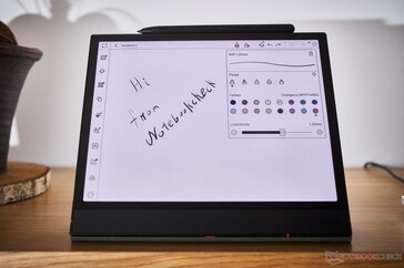 E-Ink Center, daha yüksek yenileme hızları veya daha iyi görüntü kalitesi arasında geçiş yapmanızı, kontrastı artırmanızı ve renk doygunluğunu ince ayarlamanızı sağlar. Ne yazık ki, monokrom panelin daha yüksek çözünürlüğünden yararlanmak için renkleri tamamen devre dışı bırakamıyorsunuz. Yazılım ayrıca test sırasında, çevrilmemiş metinler ve sistemin kurulumdan sonra varsayılan olarak Japonca klavye düzenine geçmesi gibi birkaç tuhaflık gösterdi. Ve cihaz tek bir toplu güncelleme sunmak yerine, kurulumdan hemen sonra arka arkaya birkaç güncelleme gerektirdi.