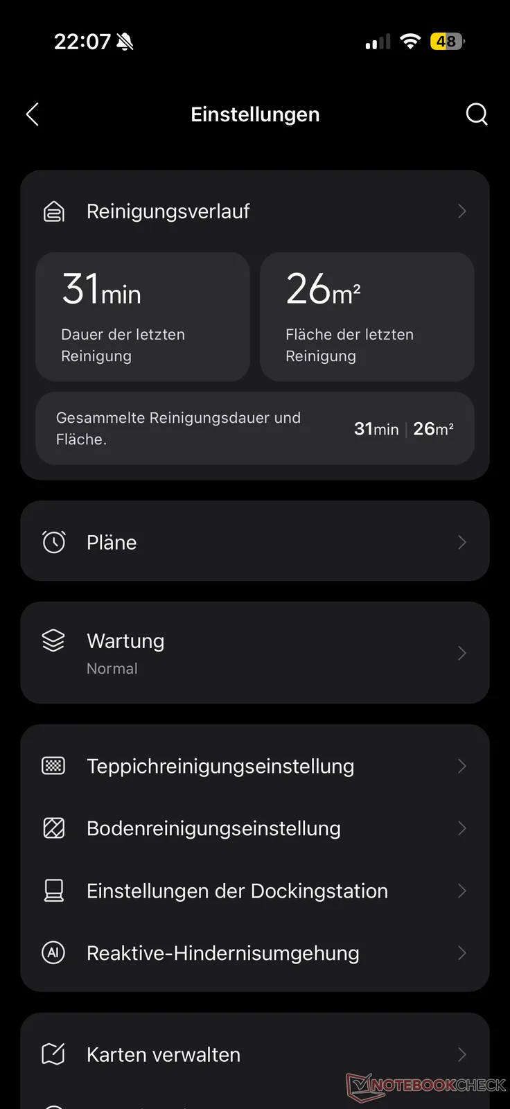Ayarlarda, temizlik davranışının ve temizlik istasyonu prosedürünün bireysel olarak ayarlanması da dahil olmak üzere birçok seçenek mevcuttur. Roborock'tan bekleyebileceğiniz gibi, sesli komutlarla kontrol için kendi sesli asistanı Rocky'nin yanı sıra canlı bir video işlevi de (etkinleştirmeden sonra) var. Çoğunlukla söylenenleri dinledi, ancak hiç kimse "Hello Rocky" aktivasyon kelimesinden bahsetmese de test süresi boyunca ara sıra konuşmalarla hitap edildiğini hissetti.