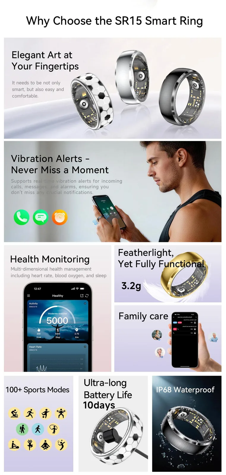 Sağlık takibiyle ilgili olarak, yüzük kalp atış hızını, kandaki oksijen seviyesini, uyku kalitesini ve stresi takip eder. Ayrıca adet döngüsü takibini destekler ve kullanıcıların uygulama aracılığıyla aile üyelerinin sağlık verilerini izlemelerine olanak tanıyan bir "Uzaktan Bakım" işlevi içerir. Fitness için yazılım, egzersiz süresini ve kalori yakımını kaydetmek için 100 spor modunun kapsamlı bir listesini içerir.