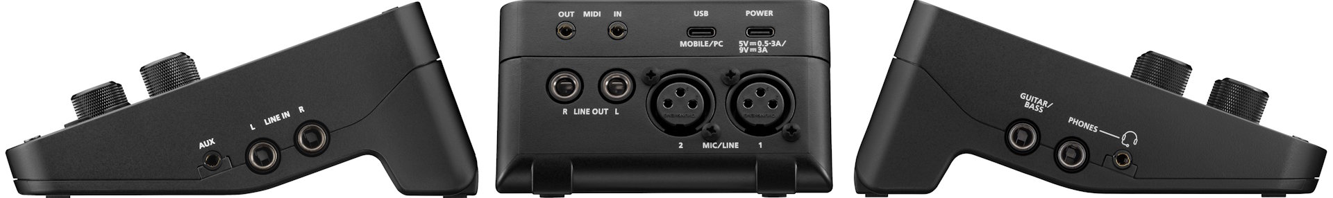 Go:Mixer Studio, fantom gücüne sahip iki 1/4"/XLR girişi, bir gitar/bas girişi, iki 1/4" (L/R) hat girişi, bir 1/8" aux girişi ve bir kulaklıklı mikrofon girişini destekler. Arabirim, hat çıkışı ve kulaklık çıkışları aracılığıyla karışık analog ses veya USB-C bağlantı noktası aracılığıyla 24 bit, 44,1 kHz ila 192 kHz'de dijital ses çıkışı sağlar.