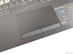 Asus TUF Gaming A15'in tuşları, daha zor algılanabilen bir baskı noktasıyla orta düzeyde bir geri bildirim sunuyor, ancak kısa bir alışma süresinden sonra daha uzun metinler yazmak için de uygundurlar. WASD tuşları, şeffaf tasarımları sayesinde klavyenin geri kalanından sıyrılıyor ve üç aşamalı tuş aydınlatmasını kullanırken onları daha belirgin hale getiriyor. İkincisi farklı renklerde yapılandırılabilir, ancak bireysel tuş aydınlatması veya farklı bölgeler sunmaz.