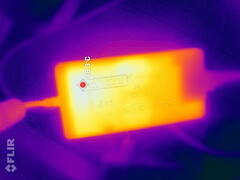 Schenker sıvı metal termal macun kullandığını vurguluyor. Core 16 hiçbir zaman tam olarak ısınmıyor - sürekli yük altında arka kısmın ortasında 46 °C'lik sıcak noktalar ölçtük. Sol taraf ve WASD tuşları sağ tarafa göre biraz daha ısınıyor gibi görünüyor. Yük altında 39 °C hala iyi.