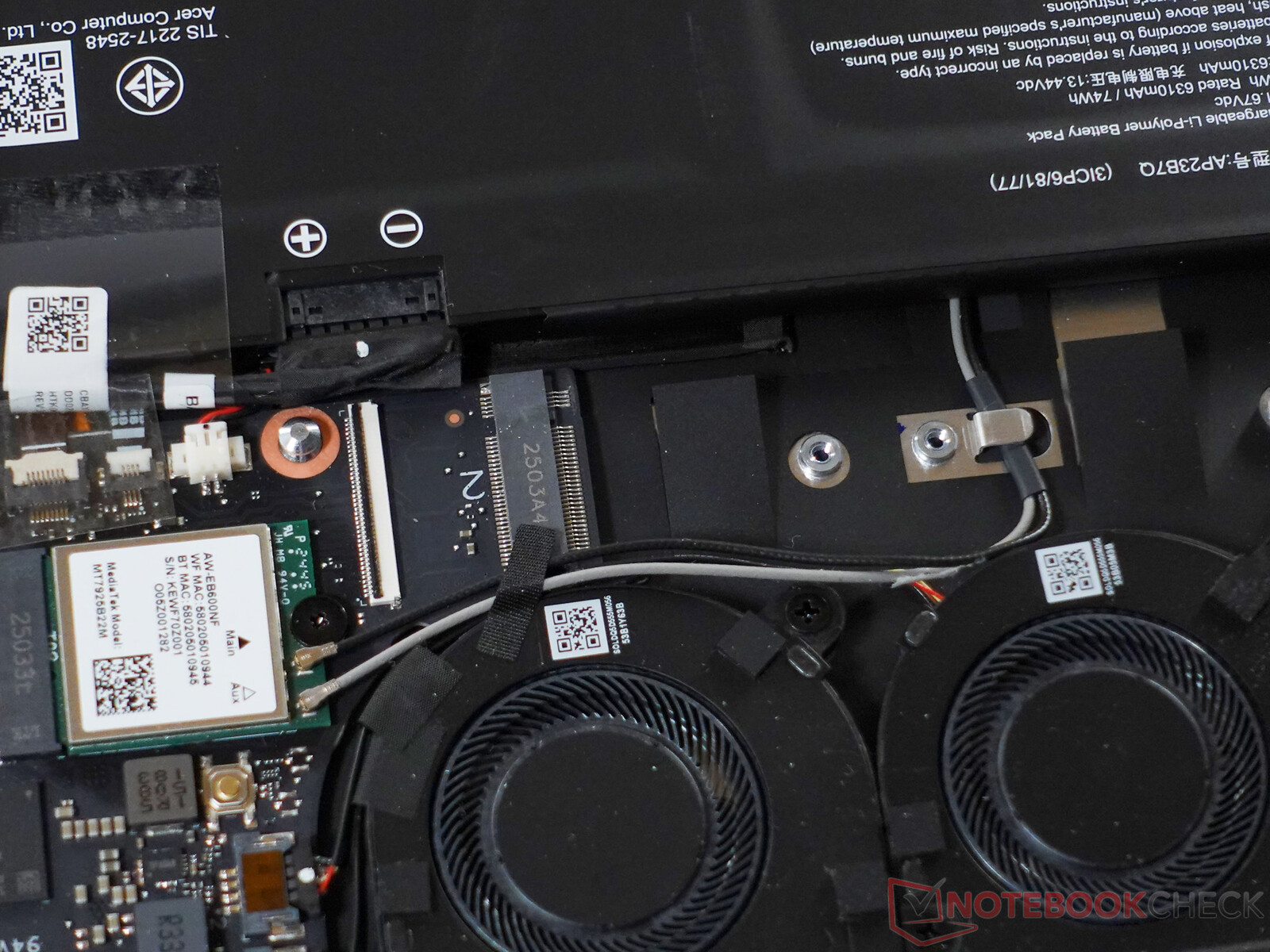 Cihaz EPEAT kayıtlıdır ve PCF belgesi (Ürün Karbon Ayak İzi) aracılığıyla çevresel etkilerine ilişkin sağlam bir şeffaflık sağlar. Erişimin ve temizliğin kolay olması bir artıdır. Kasa çıkarılabilir, SSD'ler ve WLAN modülleri değiştirilebilir ve alt karta bağlanan düz kablonun altına gizlenmiş ikinci bir M.2 SSD yuvası vardır.