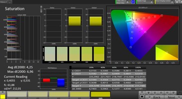 Ek olarak, ekranın parlaklığını, karanlık ve aydınlık alanların eşit olarak dağılmış bir oranıyla (APL50) inceledik. Maksimum 447 cd/m² parlaklık belirledik.