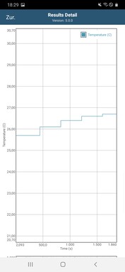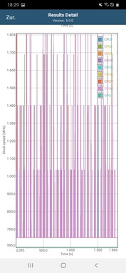 Galaxy akıllı telefonun kasası ve ekranı günlük hayatta neredeyse hiç ısınmıyor. Yük koşulları altında neredeyse 40 ° C'lik bir maksimum sıcaklığı ölçüyoruz. Daha ilginç olanı ise A20'lerin içindeki ısı gelişimi. Samsung akıllı telefonun sürekli yük altında atık ısı davranışını kontrol etmek için GFXBench uygulamasının pil testini kullanıyoruz. Manhattan 3.1 testi, çerçeve sayısının artan yük ile sabit kaldığını gösterir, bu nedenle yük altında performans düşüşü olası değildir.