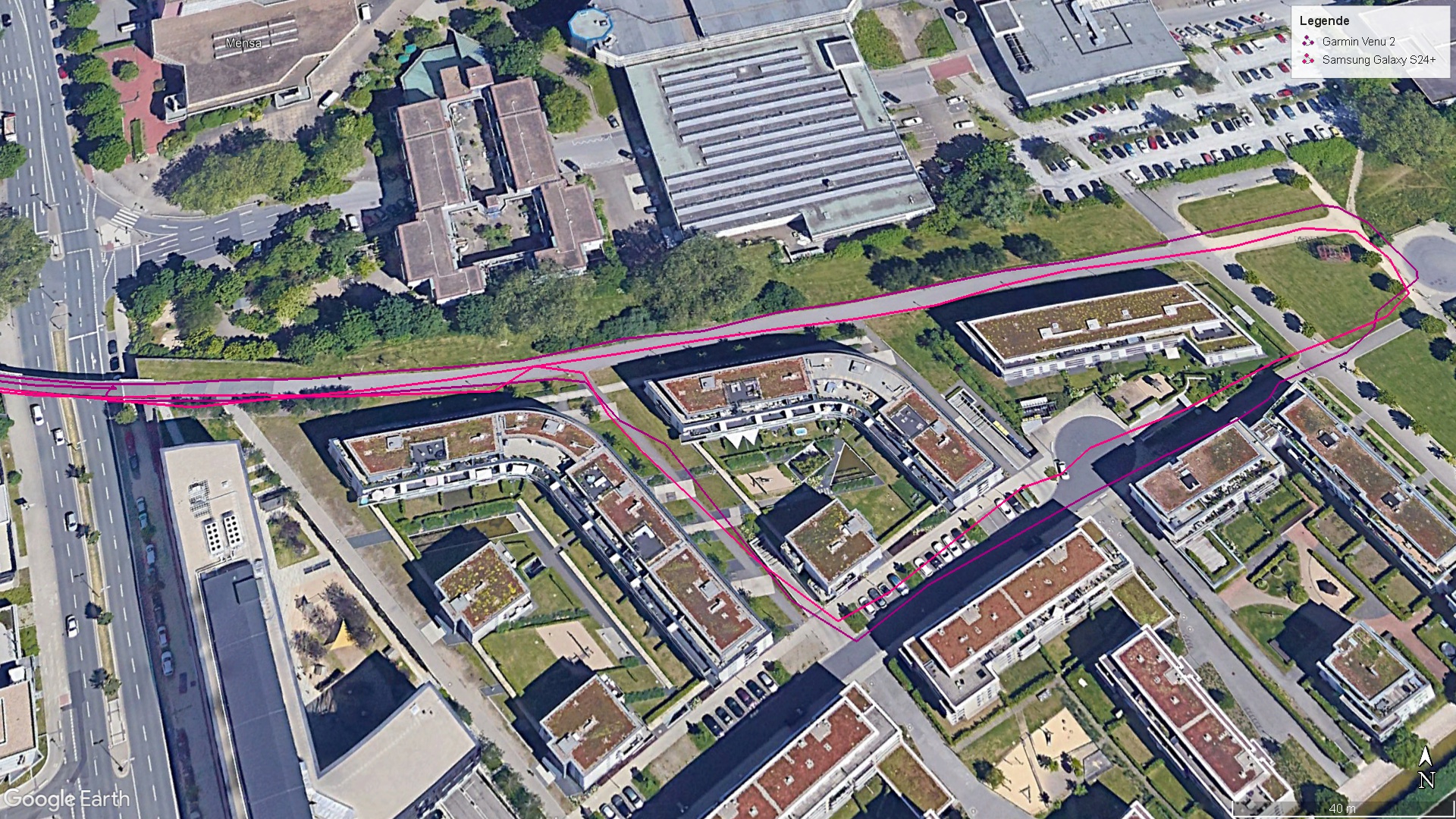 Pratikte konum belirleme doğruluğunu değerlendirmek için Galaxy S24+'ı bir bisiklet sürüşüne çıkardık ve karşılaştırma amacıyla Garmin Venu 2 kullanarak rotamızı kaydettik. Ayrıntılı rota, Samsung telefonun yalnızca küçük hatalara sahip olduğunu ve genel olarak çok doğru konumlandırma yetenekleri olduğunu ortaya koydu.