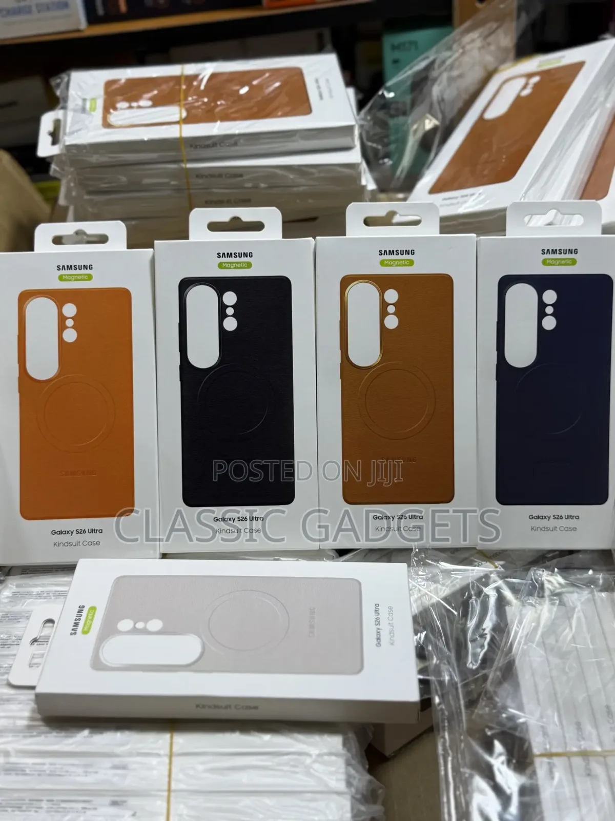 Sosyal medyadaki sayısız fotoğrafın da gösterdiği gibi Samsung'un resmi kılıfları bile bazı perakendecilerden temin edilebiliyor. Özellikle suni deri görünümlü Kindsuit kılıf, büyük miktarlarda gönderilecek gibi görünüyor ve en az beş renkte mevcut olacak. "Manyetik" kelimesi ambalaj üzerinde açıkça görülebiliyor