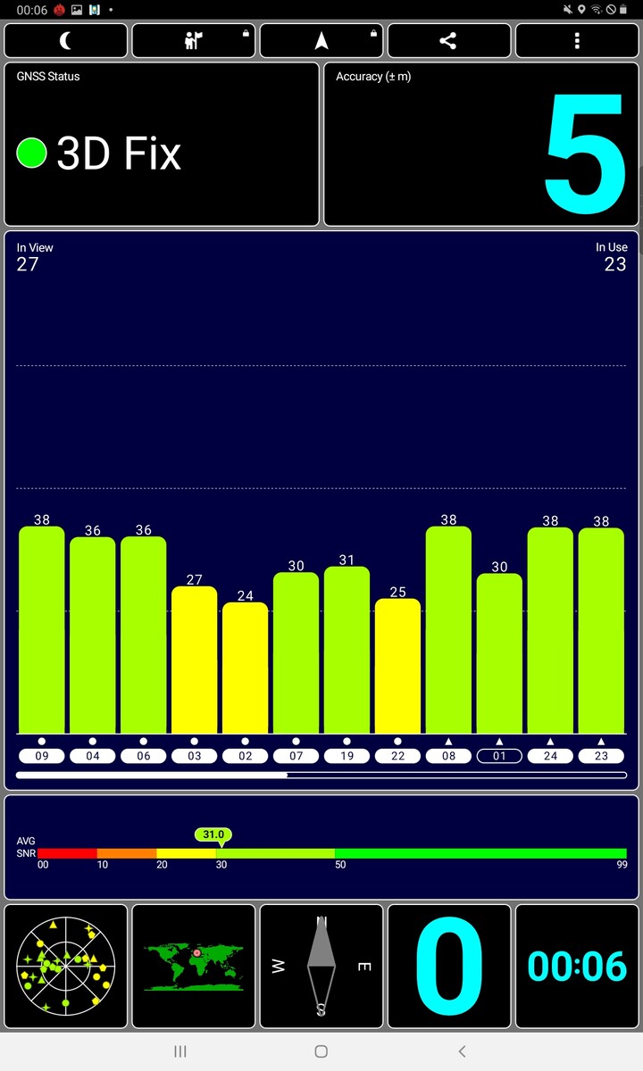 Galaxy Tab S6 Lite'ın GPS modülü hassas bir konum sağlar. İç mekanlarda biraz zaman alır, ancak konum 5 metreye (~ 16.4 feet) kadar ve hatta açık havada 3 metreye (~ 9.8 feet) kadar doğrudur.Her zaman olduğu gibi, GPS modülünün doğruluğunu bisiklete binerek test ediyoruz, bu sefer 12 km (~ 7.5 mil) uzunluğunda. Sonuçları, sırt çantamızda da bulunan profesyonel navigasyon cihazı Garmin Edge 500 ile karşılaştırıyoruz. Sonuç çok iyi, çünkü Galaxy Tab S6 Lite herhangi bir sapma göstermiyor, bu nedenle hassas GPS verileri gerektiren tüm uygulamalar için çok uygun.