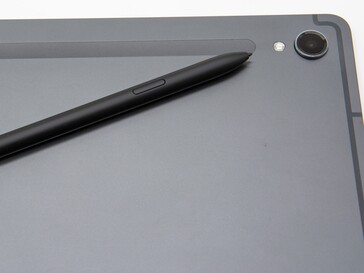 Büyük kardeşlerinin aksine, normal Tab S9'un arkasında yalnızca bir kamera bulunuyor. Bu, ince kasadan belirgin bir şekilde çıkıntı yapıyor. Bununla birlikte, tablet masaya yerleştirildiğinde girişler mümkün; sadece sol alt köşede girişler sallanmaya neden oluyor