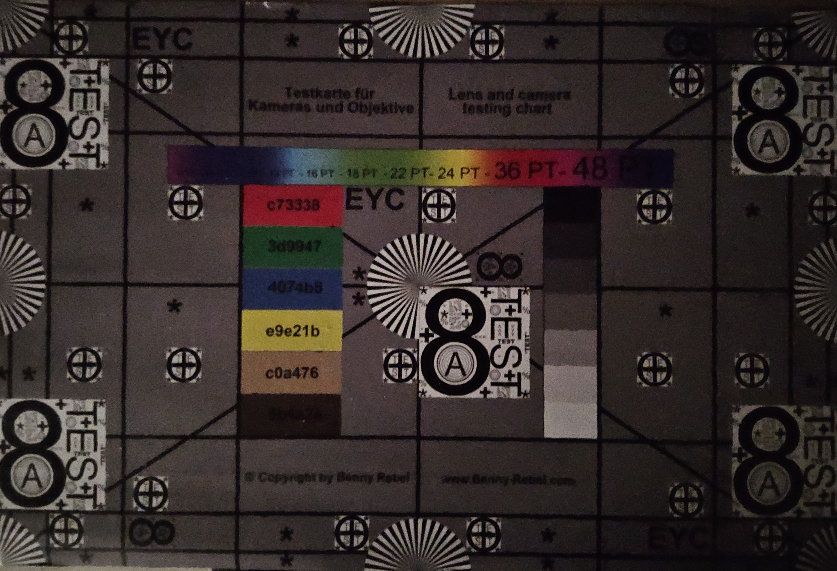 Ana kamerayı fotoğraf stüdyomuzda önceden tanımlanmış ışık koşulları altında tekrar test ediyoruz. Tam stüdyo aydınlatması altında, test grafiği kenarlardaki alanlarda bile çok keskin görünüyor. Sadece tek bir lüks aydınlatma altında, nesne hala tanınabilir ancak çok grenli görünüyor.