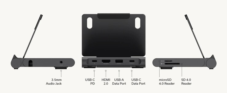 Hub'ı bağlamak için kullanılan USB-C kablosu, kolay taşıma için cihazın alt kısmında saklanabilir. Hub bağlandıktan sonra, biri güç adaptörü bağlamak için de kullanılabilen iki USB-C bağlantı noktası dahil olmak üzere tabletin bağlantı seçeneklerini genişletiyor. Ayrıca bir USB-A portu ve bir monitör veya akıllı TV bağlamak için bir HDMI portu vardır. Sağ tarafta 3,5 mm kulaklık girişi, sol tarafta ise SD ve microSD kart okuyucu yer alıyor