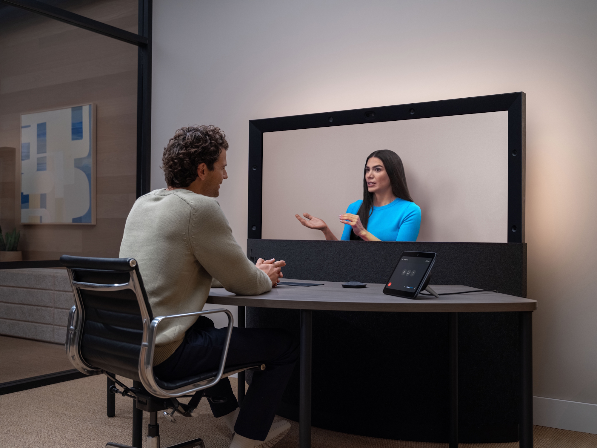 Esasen, etrafında bir dizi kamera ve bağlı bir masa üzerinde iki mikrofon bulunan devasa bir 3D ekran. Kullanıcılar söz konusu masanın önüne oturarak görüntülü görüşme yapabiliyor - konuştuğunuz kişi tam karşınızda oturuyormuş gibi görünen görüntülü görüşmeler.