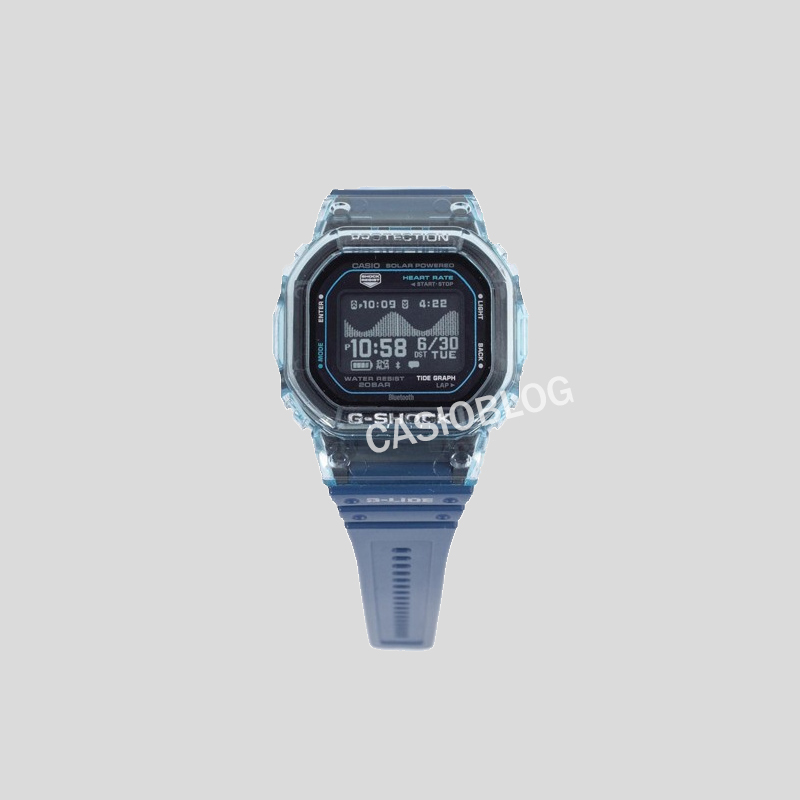 Sızdırılan görseller iki varyantı gösteriyor: siyah GBX-H5600-1 ve mavi GBX-H5600-2, her ikisi de yarı saydam kadranlara ve kasalara sahip. Ayrıca kayışa basılmış G-LIDE logosunu da görebiliyoruz, bu da su sporları tutkusunu açıkça ortaya koyuyor.