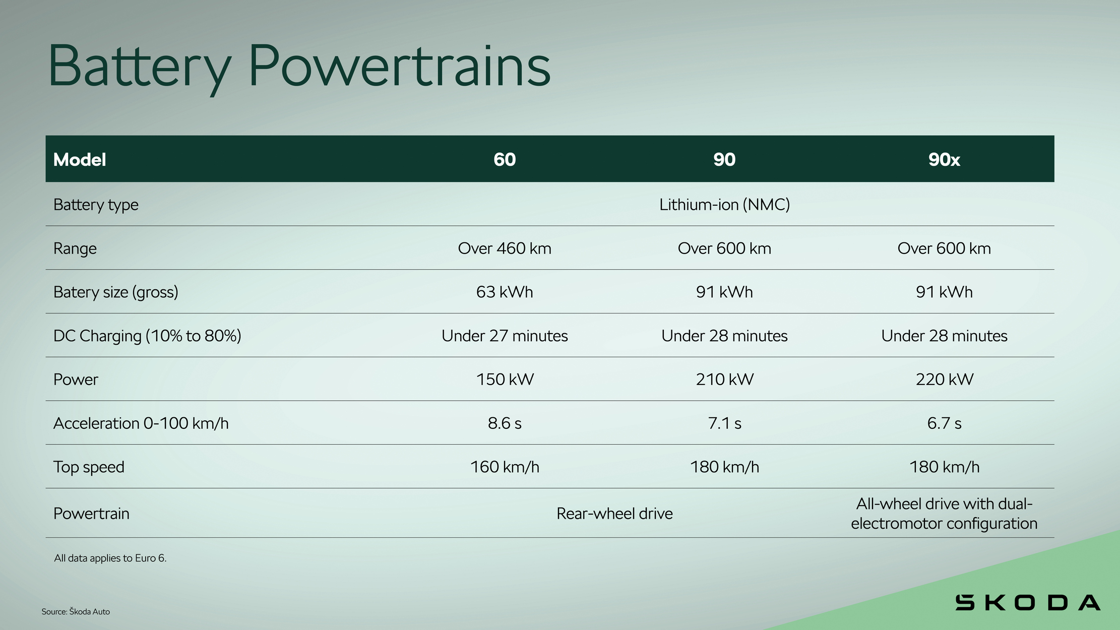 Büyük 90 ve 90x modelleri, 600 kilometrenin üzerinde menzil sağlayan 91 kWh'lik güçlü bataryalarıyla bunu aşıyor. 90 modeli 210 kW güce ve arkadan çekişe sahipken, üst sınıf 90x 220 kW güce ve iki elektrik motorlu dört tekerlekten çekişe sahiptir. Tüm batarya varyantları hızlı şarj cihazında 28 dakikadan kısa bir sürede yüzde 10'dan yüzde 80'e kadar şarj edilebiliyor.