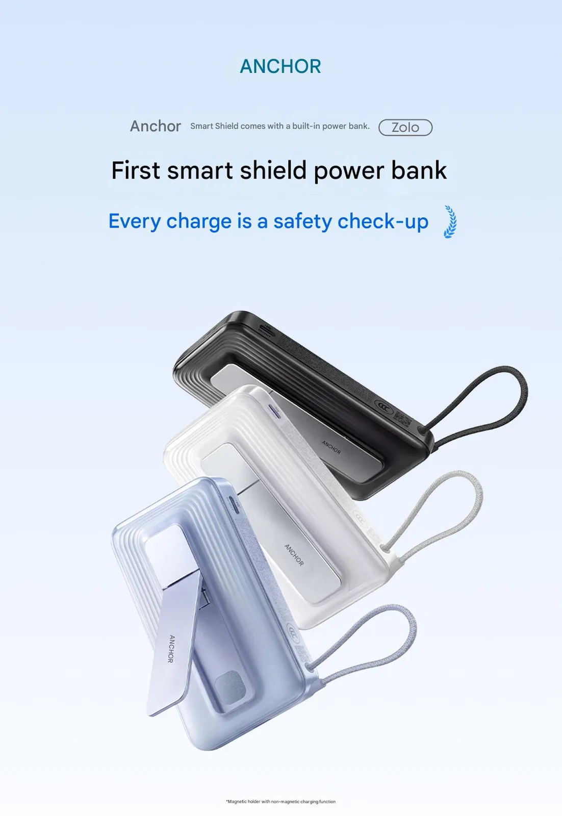 The Anker Zolo Smart Shield Dahili Kablolu Güç Bankası çin'de piyasaya sürüldü. Bu model, Nano Smart Shield Manyetik Güç Bankası ile birlikte geldi ve her iki aksesuar da markanın yeni güvenlik teknolojisine sahip.