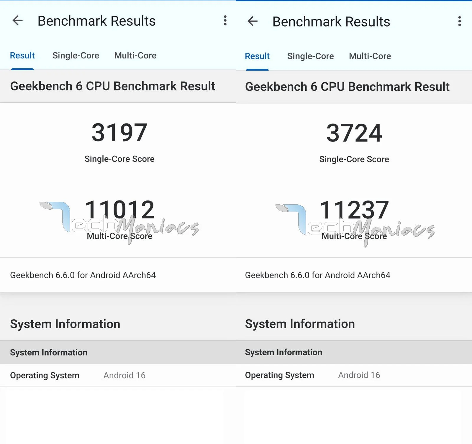 Asıl ilginç olan, Exynos 2600'lü Galaxy S26 ile karşılaştırıldığında, tek çekirdek skorunda kayda değer bir fark olması. TechManiacs tarafından paylaşılan ekran görüntüsü gibi exynos destekli telefonun tek çekirdekte 3.197 ve çok çekirdekte 11.012 puan aldığını gösteriyor.