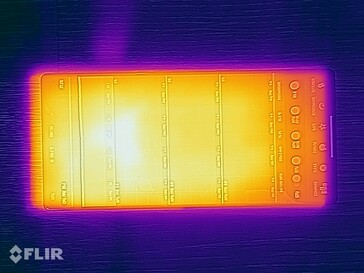 (-) Üst taraftaki maksimum sıcaklık, 35.2 °C / 95 F ortalamasına kıyasla 55.4 °C / 132 F'dir. , Smartphone sınıfı için 21.9 ile 247 °C arasında değişir.