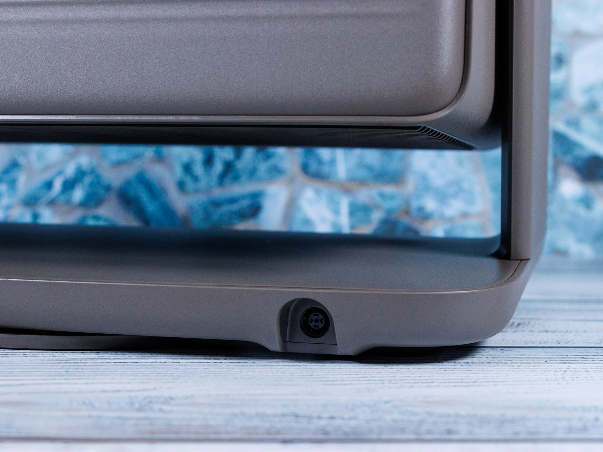 Xgimi Horizon 20 Max, projektörün isteğe bağlı zemin standına vidalanması için alt tarafında ¼" diş bulunan sabit bir standa sahiptir. Taban plakası, projektörün 360° döndürülmesini ve toplam 135° eğilmesini sağlayan entegre bir döner tablaya sahiptir. Suni deri görünümüyle çoğu oturma odasına iyi uyum sağlar ve ayrıca kirlenmeye karşı özellikle hassas değildir.