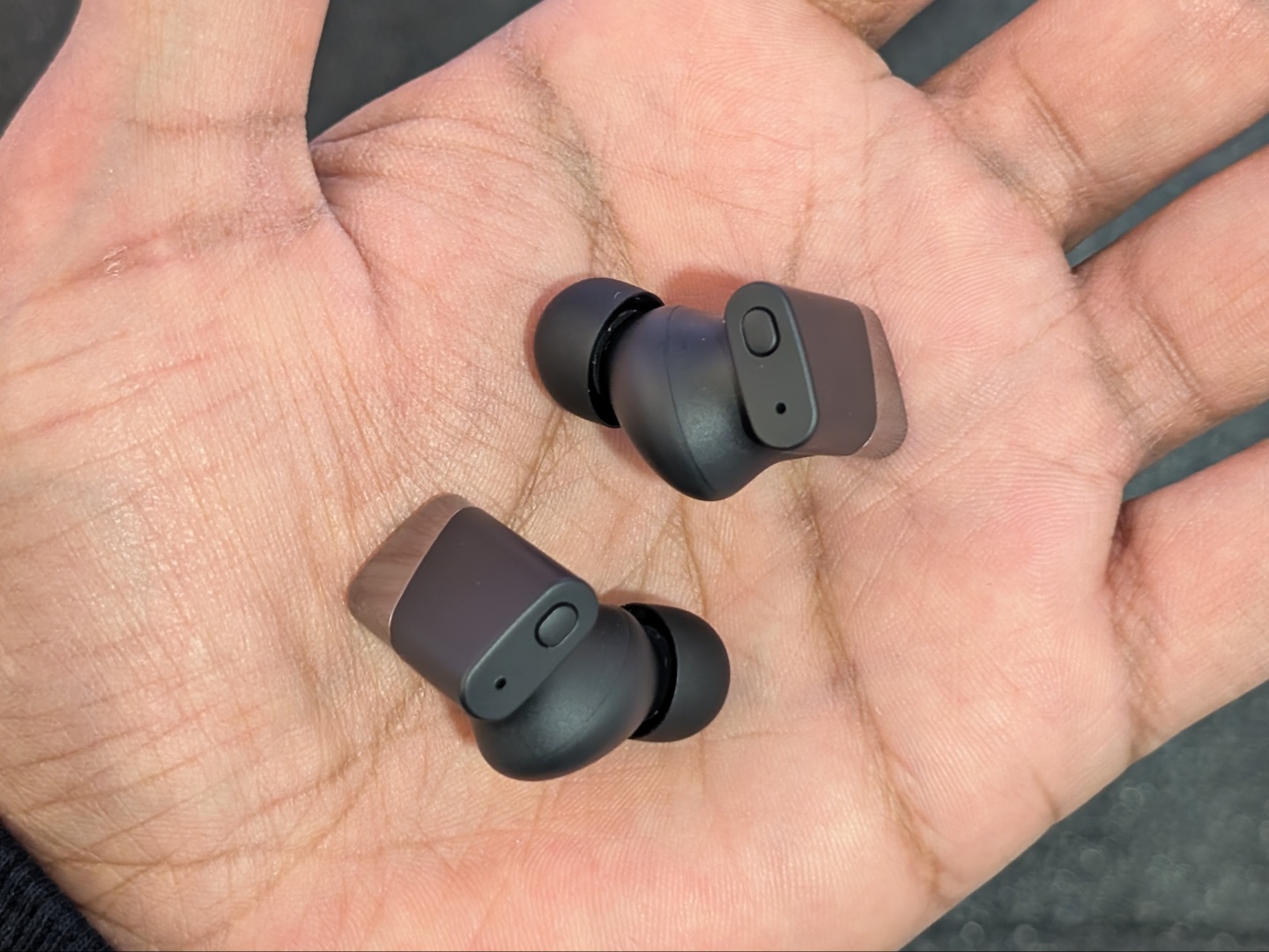 Status Pro X kulaklıkların şekli ve tasarımı oldukça kutuplaştırıcı olabilir. Şahsen benim hoşuma giden benzersiz bir form faktörüne sahipler. Geleneksel kulaklıklar gibi yuvarlak değil, daha düz ve dikdörtgen bir şekle sahipler. Bu da girişler için daha geniş ve dokunması kolay bir yüzey sağlıyor. Bu arada, dokunmatik kontrollerin yanı sıra her bir kulaklığın üstünde küçük bir tane olmak üzere fiziksel düğmeler de var. Dokunmatik kontroller özelleştirilebilirken, fiziksel düğmeler özelleştirilemiyor. Bunlar ANC modları arasında geçiş yapmak ve sesli asistanı etkinleştirmek için ayrılmıştır. Gerekirse, ANC modlarını değiştirmek için dokunmatik kontrolleri de kullanabilirsiniz, ancak sesli asistan aktivasyonu fiziksel düğmelere özeldir.