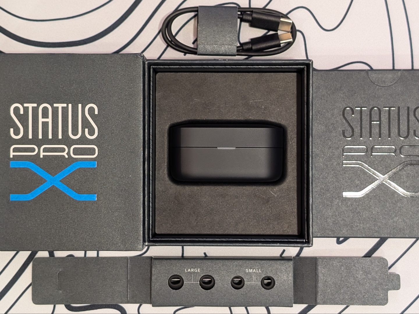 Pro X'ler, temel belgeler, USB Type-C şarj kablosu, farklı boyutlarda kulak tıkacı seti ve kompakt şarj çantasının bulunduğu küçük bir kutuda paketlenmiştir. Ile karşılaştırıldığında Baseus Inspire XP1 ve zaten kompakt olan EarFun Air Pro 4+ kılıfına kıyasla Pro X kılıfı daha da küçük görünür ve hissedilir.