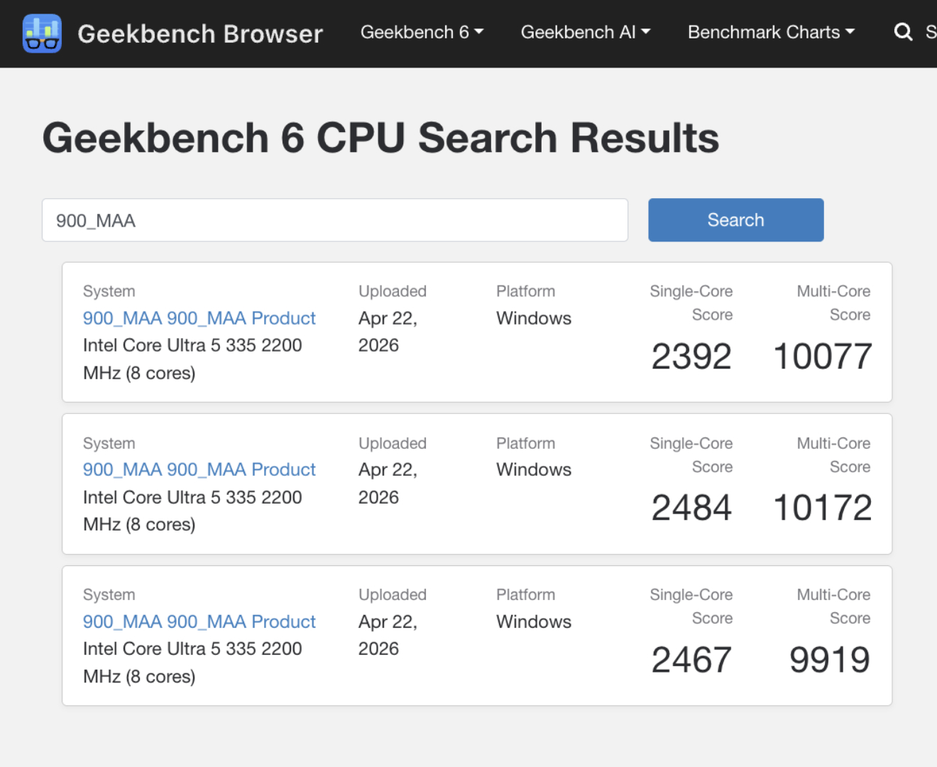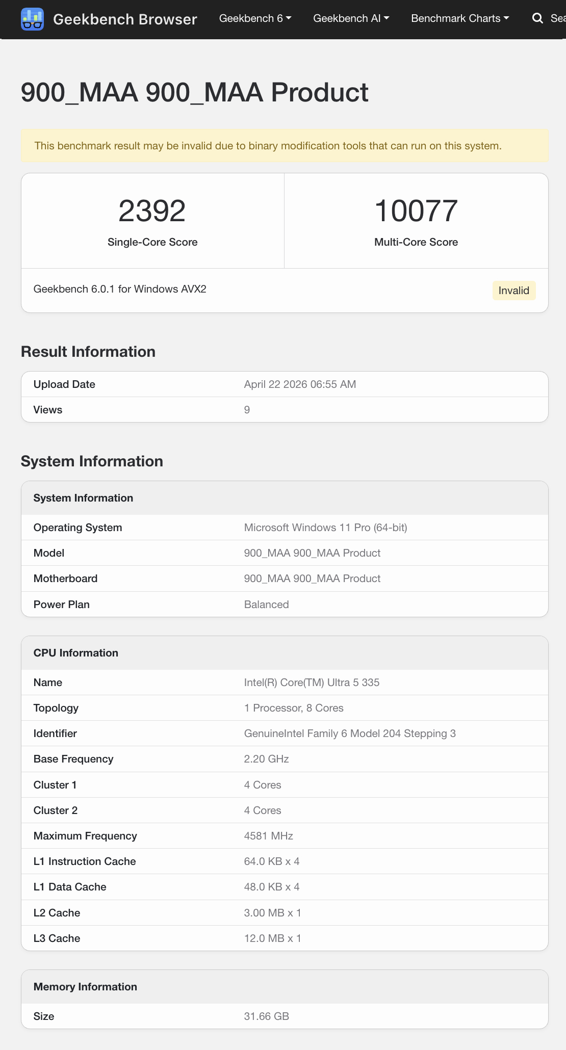 Geekbench özellikle şunlardan bahsetmektedir Core Ultra 5 325 ve Core Ultra 5 335. 8 çekirdekli Panther Lake işlemcilerde Intel, Core Ultra 5 335'in lehine sadece 100 MHz daha yüksek boost saat hızı ile çifti birbirinden ayırıyor. Ayrıca, aynı listelerde 24 GB ve 32 GB RAM modellerinden bahsedilmektedir. Yine de Surface Pro 12'nin 16 GB RAM ile başlayacağı tahmin ediliyor.