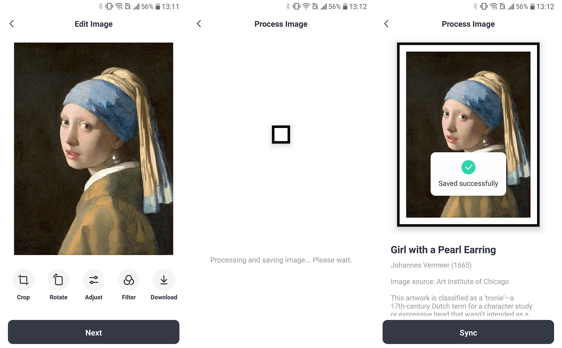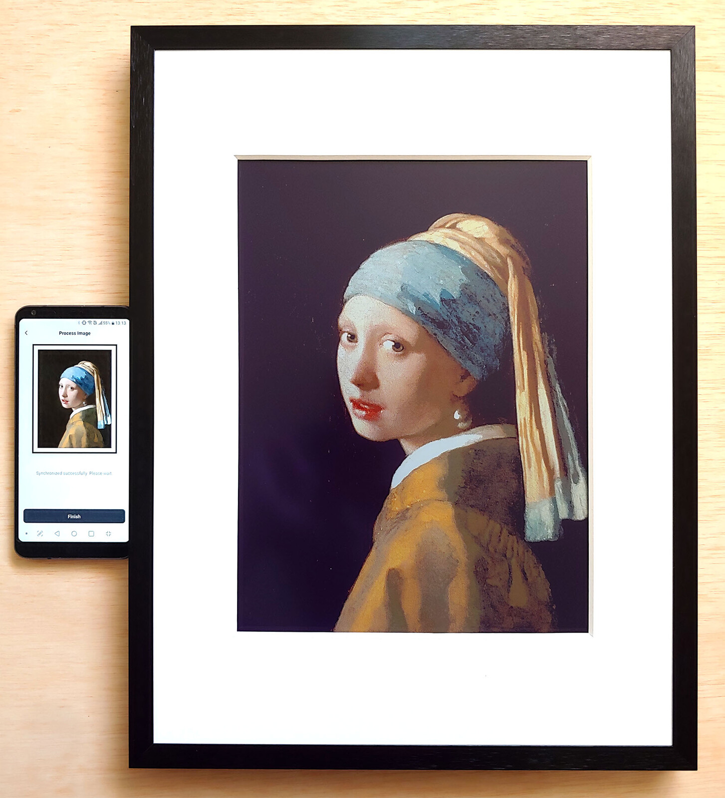 Kişisel görüntüler ve ücretsiz klasik sanat eserleri düzenlenebilir, ardından bir dakika içinde yüklenebilir ve bu sırada görüntülenen görüntü birkaç kez yanıp söner ve ters çevrilir. Zamanlanmış slayt gösterileri için sanat çerçevesine on adede kadar görüntü kaydedilebilir.