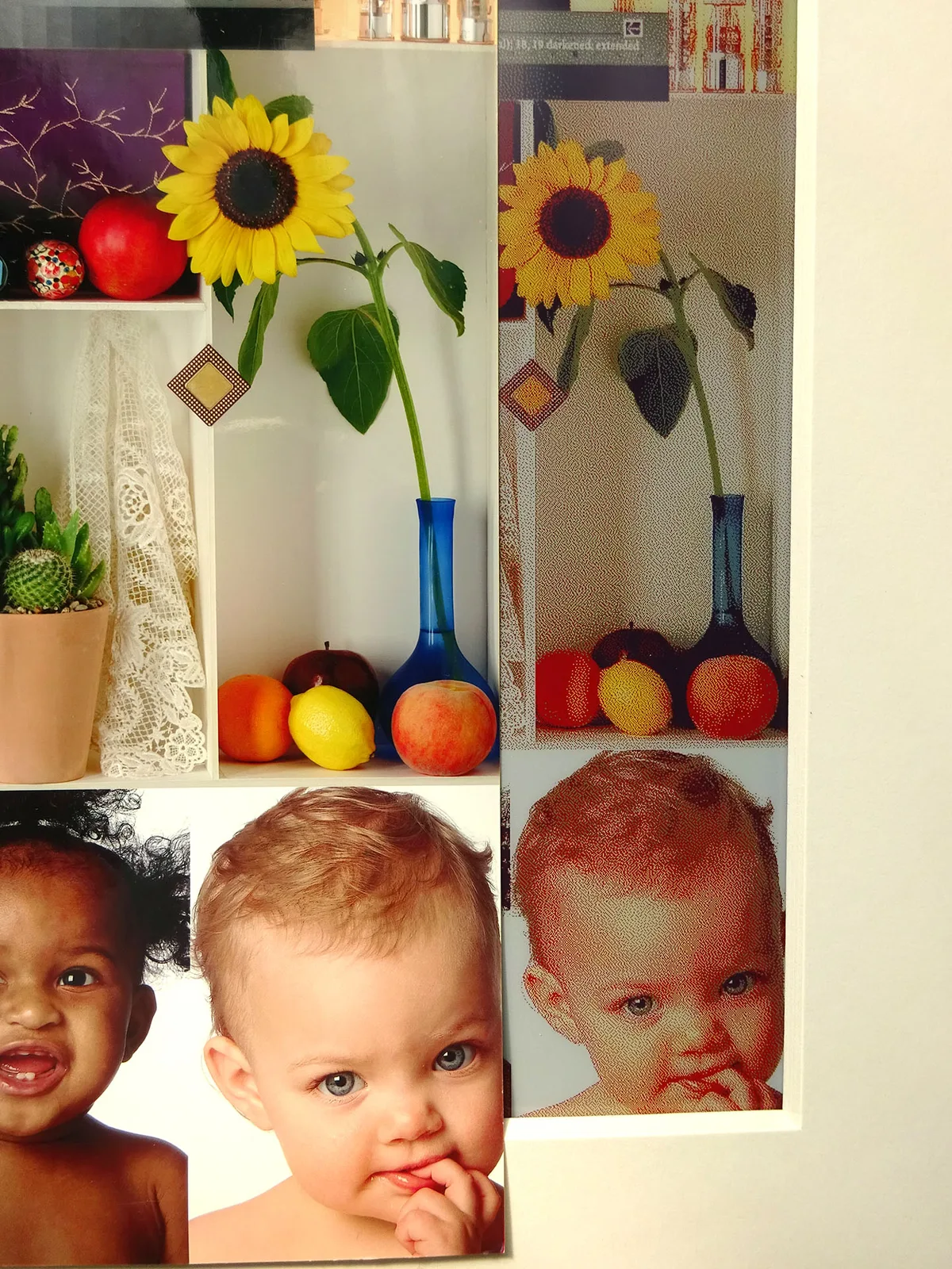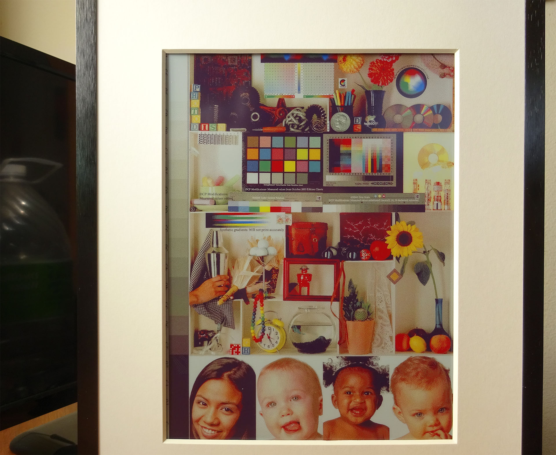 Photodisc test hedefi fotoğraf baskısı ile yapılan karşılaştırma E Ink Spectra 6 panelinin sınırlarını vurgulamaktadır. Arka plan saf beyaz değildir, bu da gölge detaylarını ve maksimum kontrastı daraltır. Renk gamı da özellikle yeşiller ve mavilerde sınırlıdır.