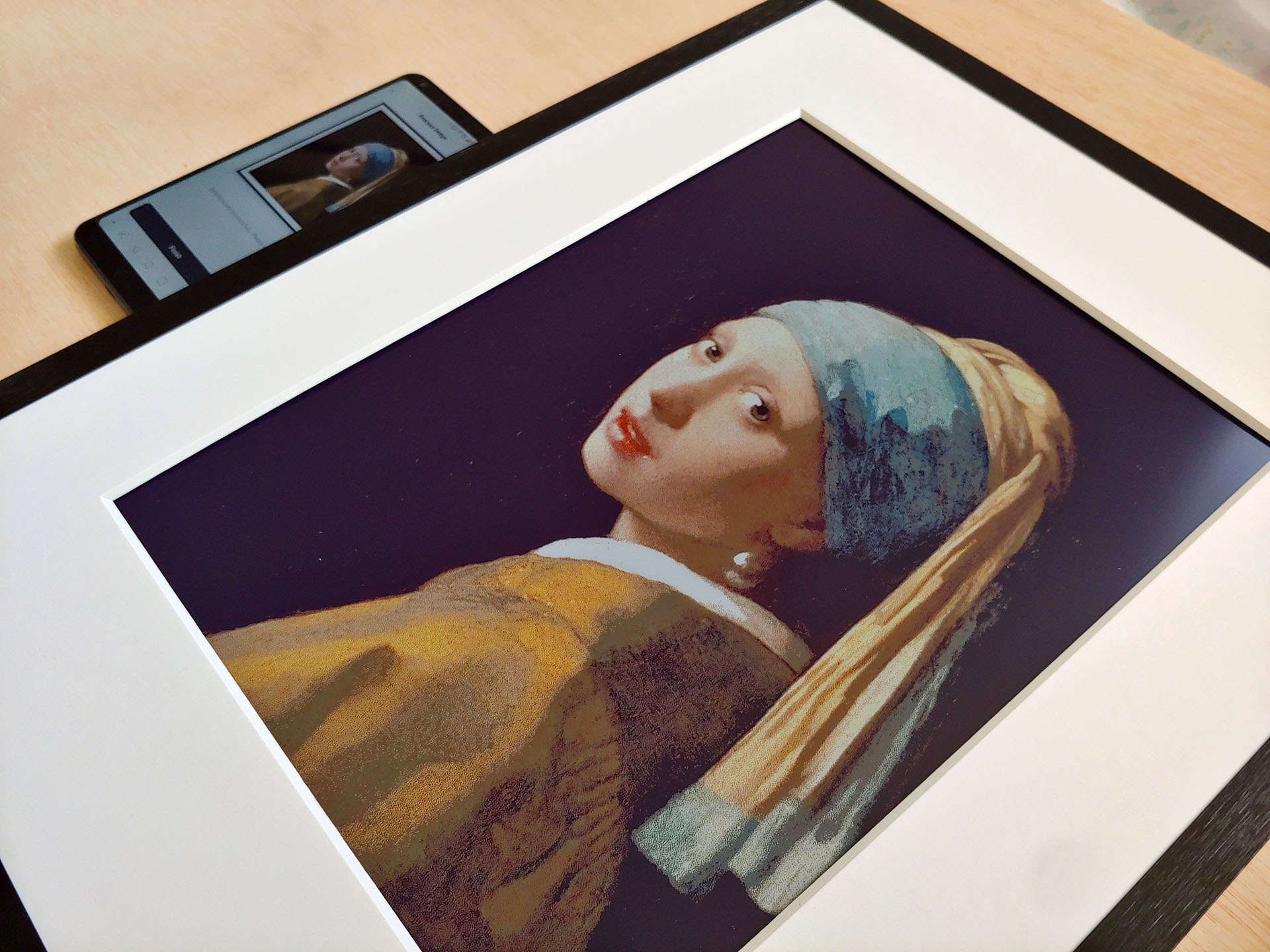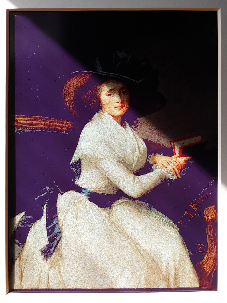Mutlak görüntü kalitesi, 4K OLED sanat çerçeveli TV veya fotoğraf baskısından daha düşüktür. Panel sadece 65.000 renk ve düşük çözünürlük sunuyor, bu nedenle tek tek pikseller yakından görülebiliyor.