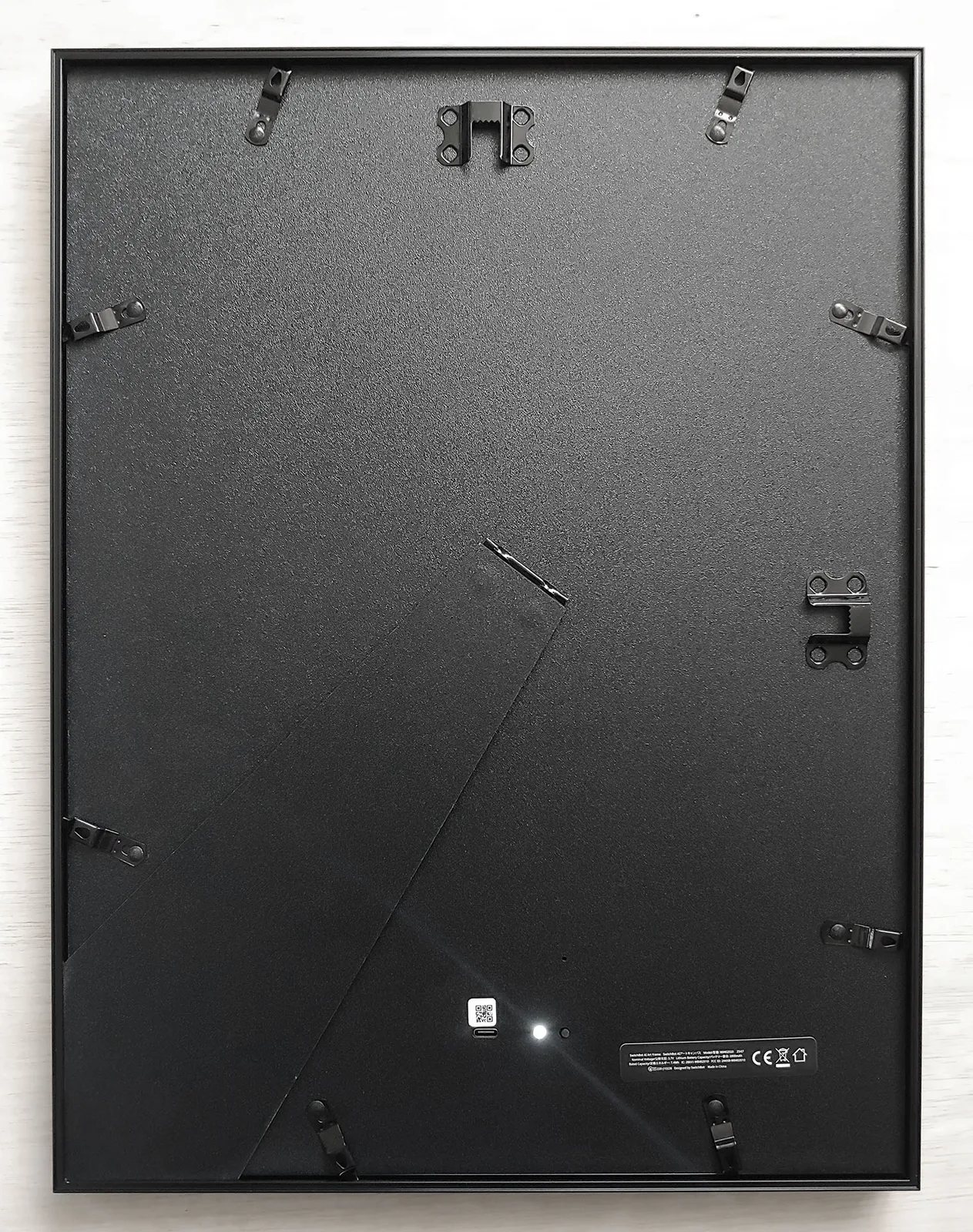 13,3 inç SwitchBot, uzaktan bakıldığında sıradan çerçeveli bir sanat eseri gibi görünen sade bir tasarıma sahiptir ve E Ink Spectra 6 işık yansımalarını azaltmak için mat bir yüzeye sahip olan ekran, alüminyum çerçeve içine monte edilmiştir. Çerçeve, katlanabilir standı sayesinde duvara monte edilebilir veya masalara yerleştirilebilir. USB-C şarj portu, bağlantı düğmesi ve LED durum ışığı arka tarafta yer alıyor, bu da çerçevenin şarj veya kurulum için duvardan çıkarılması gerektiği anlamına geliyor.