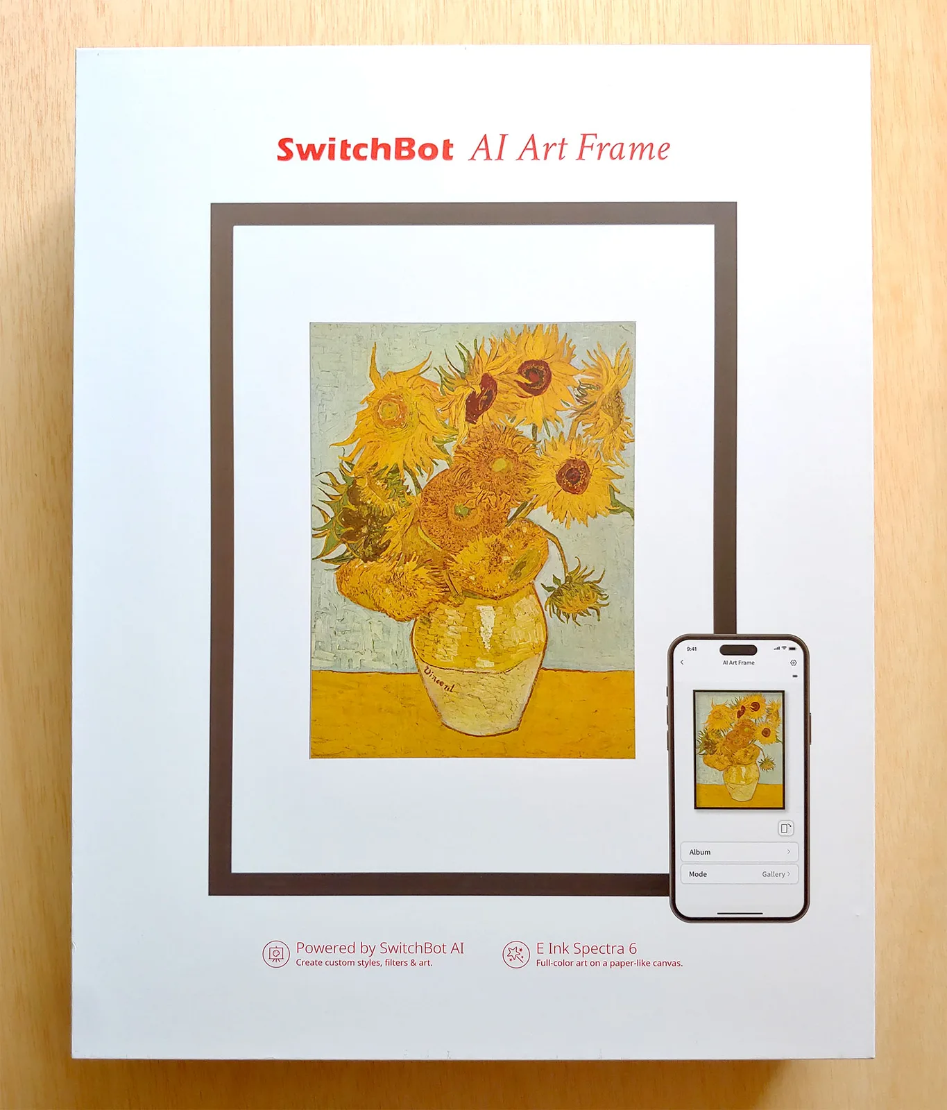 SwitchBot AI sanat çerçevesi, ünlü ve AI tarafından oluşturulan sanat eserlerinin yanı sıra ultra düşük güç tüketimi ile yüklenen herhangi bir görüntüyü sonsuz bir akışla görüntüler.