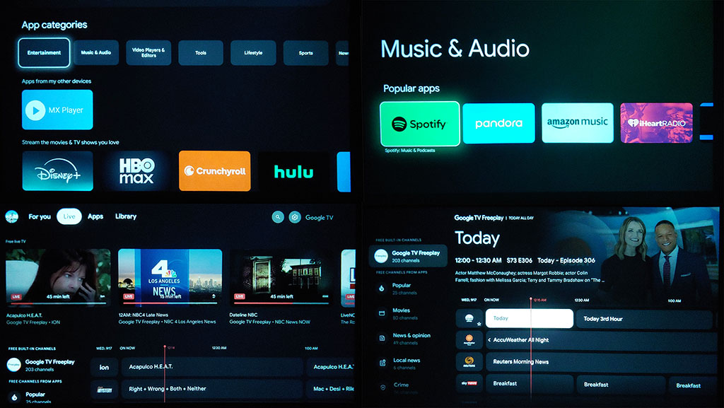 - Google TV OS - Birçok ücretsiz ve ücretli akış kaynağı
