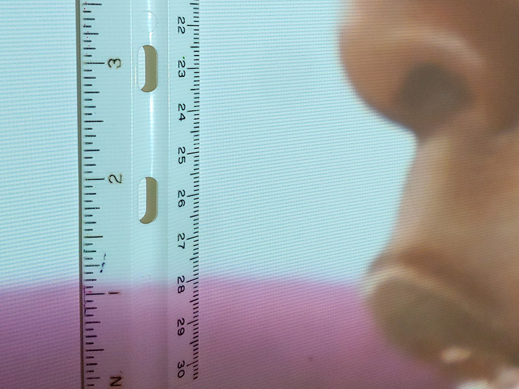 Otomatik kurulumdan sonra projeksiyon boyunca odak ve çözünürlük, projektör duvara nispeten kare olduğu sürece çok iyi. Projektör duvara ciddi bir açıyla baktığında, doğal olarak ek görüntü bozulması olacaktır.