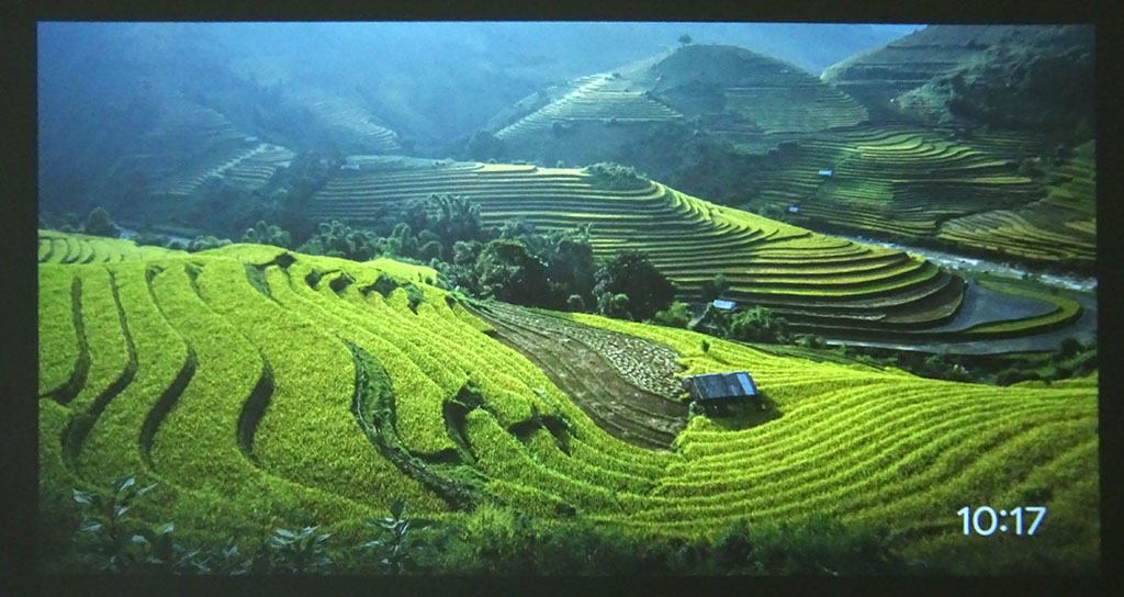 Standart görüntü modunda, görüntüler standart bir sinema salonundaki görüntülere benzer şekilde sessiz doygunluk ve yoğunlukta görünür. Canlı görüntü moduna geçildiğinde, bazılarının tercih edebileceği şekilde görüntüler daha canlı hale gelir. Görüntü parlaklığı ve renk canlılığı projektörün duvara olan mesafesine bağlıdır, bu nedenle daha yakın yerleştirme ile daha etkileyici bir görüntü ortaya çıkar.