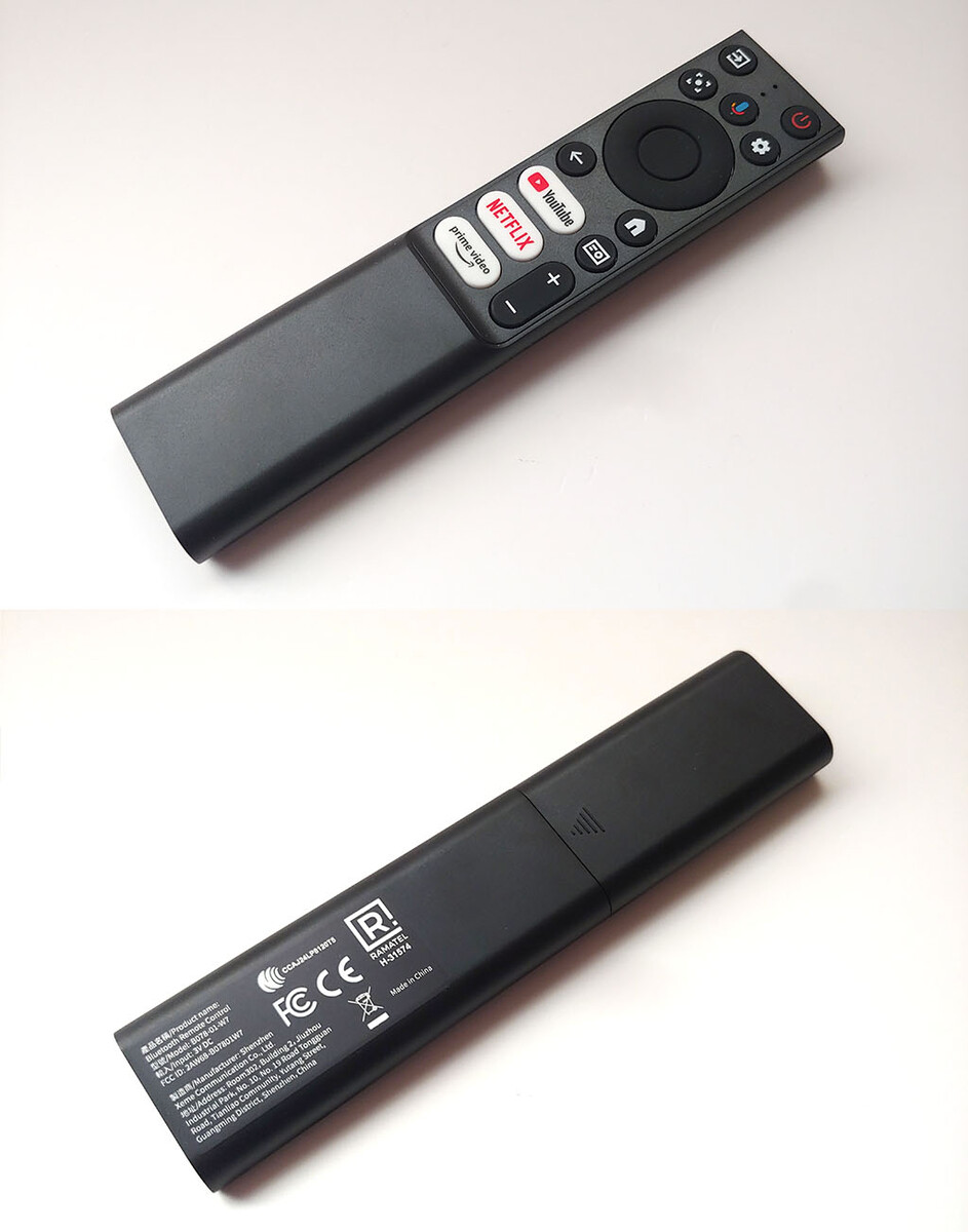 Ürünle birlikte verilen uzaktan kumanda, ses düğmelerini ana düğmelerden daha yüksek bir seviyeye yerleştiren çift seviyeli bir tasarıma sahip plastikten yapılmıştır. Tüm düğmeler kısa bir vuruşa ve net bir tepkiye sahiptir ve kol uzunluğunda iyi okunabilirliğe sahiptir. Düğmeler ne arkadan aydınlatmalı ne de karanlıkta parlıyor. Uzaktan kumandanın arkası daha iyi kavrama için hafif dokuludur, bu da iki AAA pili değiştirmek için kapağı çıkarırken yardımcı olur. IR alıcısı arka bağlantı noktalarının yanında yer alıyor, ancak uzaktan kumanda, kontrol etmek için doğrudan TCL C1'e doğrultulması gerekmeyecek kadar güçlü.