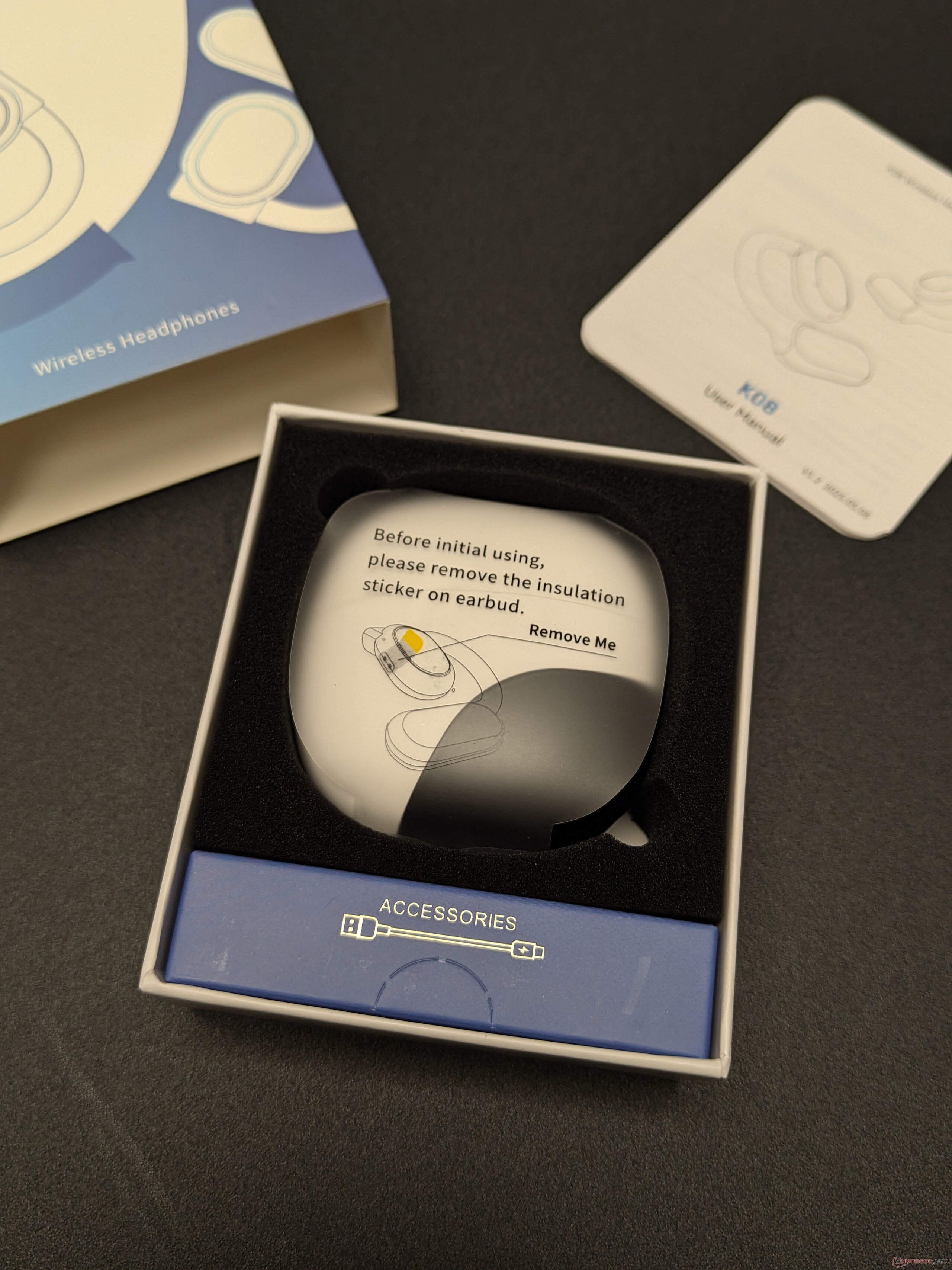 Diğer uygun fiyatlı ses aksesuarlarına benzer şekilde, kutudan çıkarma deneyimi basittir. Ünite bir şarj kutusu, talimatlar ve bir USB kablosuyla birlikte geliyor. Özellikle, K08'in çeviri işlevinin kilidini açmak için gerekli olan tamamlayıcı uygulamaya odaklanılıyor.