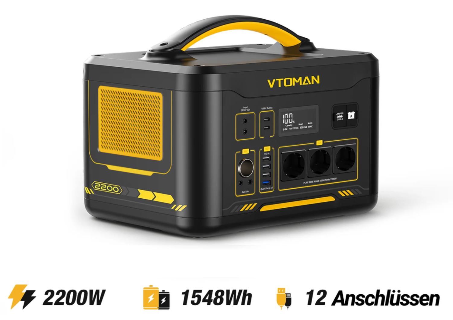 VTOMAN Jump 2200 şu anda uygun bir fiyata satılıyor! Tavsiye edilen perakende satış fiyatı olan 1.399 €'dan 860 €'luk büyük bir indirim sayesinde, bu taşınabilir güç istasyonu şu anda sadece 539 €'ya satışta.