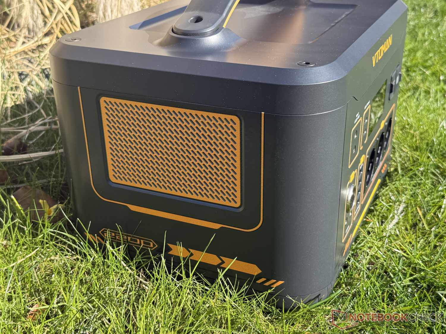 Vtoman Jump 2200 ilk bakışta klasik bir güç istasyonu gibi görünüyor. Gibi tanınmış üreticilerin rakipleriyle karşılaştırıldığında Anker Solix veya Bluetti detaylarda birkaç farklılık var. İlk olarak, cihazın üzerinde merkezi olarak konumlandırılmış büyük bir taşıma kolu vardır. Bu, daha büyük eşyaların güç istasyonunun üzerine yerleştirilmesini önlüyor, ancak sarmal kabloları altına sıkıştırmak için çok pratik. Sonuçta, yaklaşık 17,5 kg ağırlığındaki güç istasyonu bu tutamakla kaldırılabiliyor.