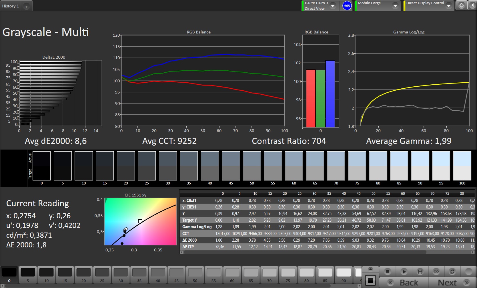 ΔE Greyscale Calman: 8.6 | ∀{0.09-98 Ø5}