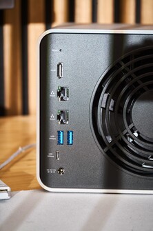 Geliştirilmiş yapının ötesinde, Plus modeli birkaç önemli yükseltme sunmaktadır. En önemlisi, artık ev ağına, 10 Gbps'lik birleşik bant genişliği için aynı anda kullanılabilen çift 5 Gbps Ethernet bağlantı noktası üzerinden bağlanıyor. Pratikte NAS, önceki modele göre dört kata kadar daha hızlı olabilir.