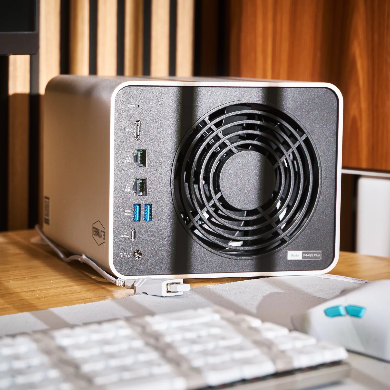 TerraMaster F4-425 Plus, sağlam metal gövdesi, sessiz fanı ve özellikle çok yönlü özellik setiyle puan kazanıyor. Dört sabit sürücü, üç SSD, dört hızlı USB portu ve iki 5 Gbps Ethernet portu güçlü bir izlenim bırakıyor.