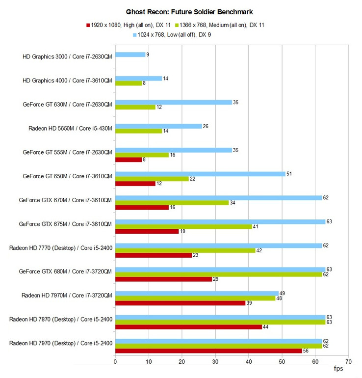 - XMG P502 (Core i7-3610QM, GeForce GTX 675M, GTX 670M & HD Graphics 4000, 8 GB RAM)