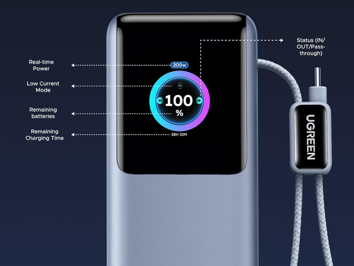 Ugreen, çift entegre kablo ve akıllı ekrana sahip yeni 25.000mAh güç bankasını piyasaya sürdü