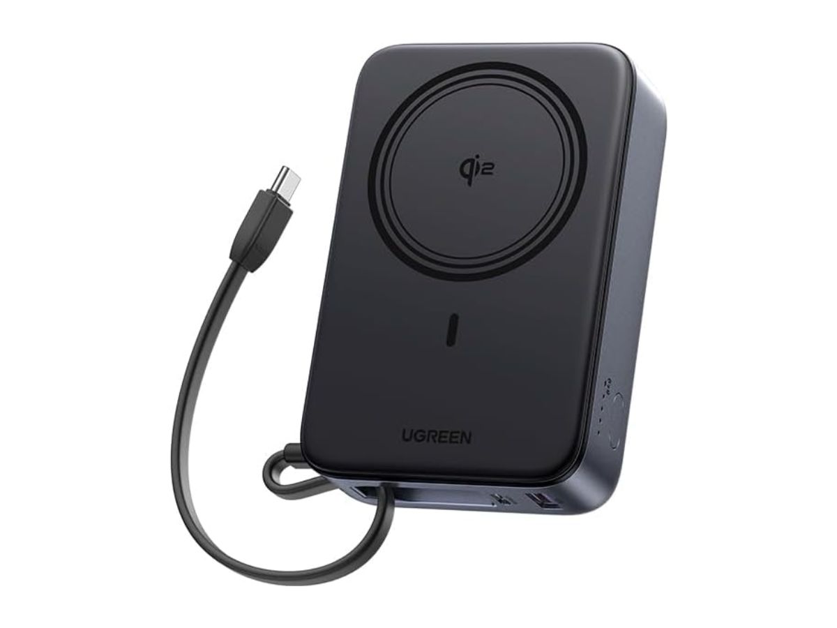 Ugreen'in kısa süre önce tanıttığı Manyetik Kablosuz Güç Bankası 20.000 mAh bataryaya sahip ve 30W USB-C girişi ile yaklaşık 4,5 saatte tamamen şarj oluyor. Bu, eski modelin sunduğu kapasiteyle aynı olsa da, iki aksesuar arasında birkaç fark daha var. Örneğin, yeni versiyonda ekran bulunmuyor, bunun yerine pil seviyesi LED ışıklarla gösteriliyor ve örgülü kablo plastik bir eşdeğeriyle değiştiriliyor.